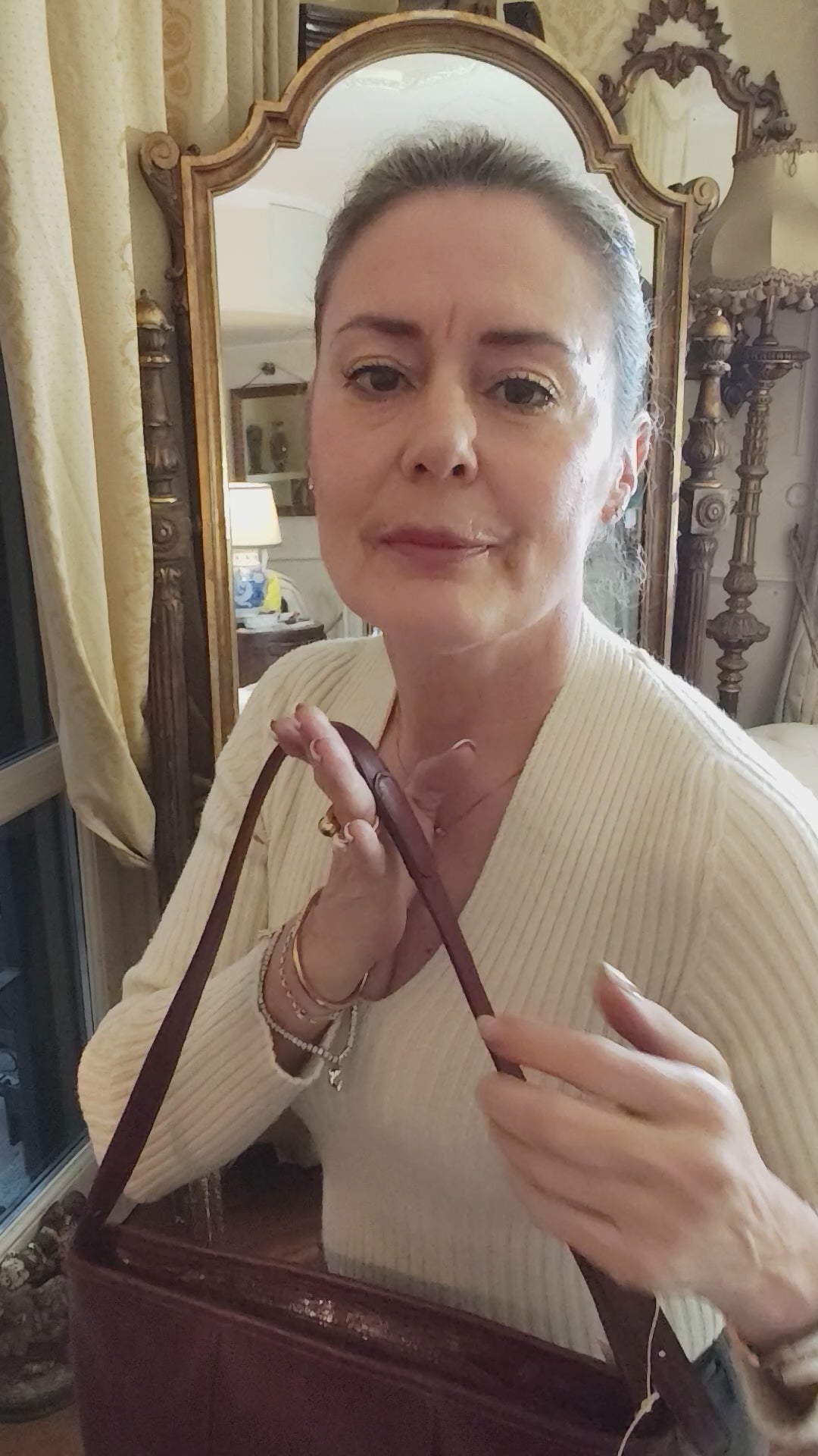 La tracolla in pelle bordeaux è regolabile, pensata per una portabilità confortevole a spalla.