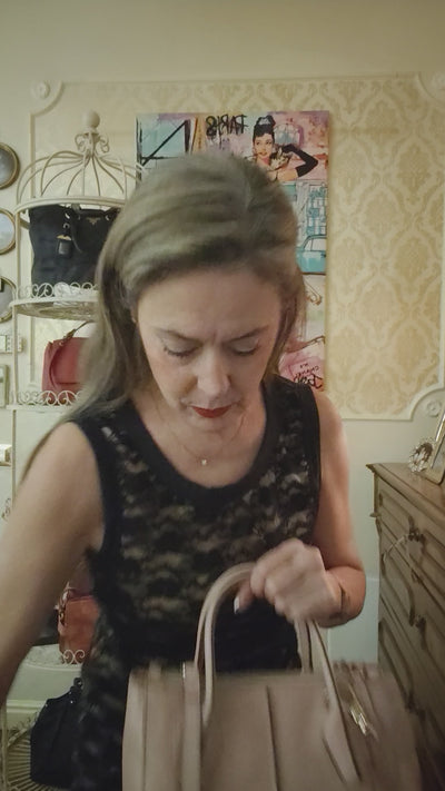 Colore e Design: Il rosa cipria è una tonalità raffinata e versatile che aggiunge un tocco di eleganza discreta, mentre la pelle micro martellata conferisce una texture unica, resistente e pregiata. La metalleria dorata esalta la bellezza della borsa, rendendola ancora più prestigiosa.